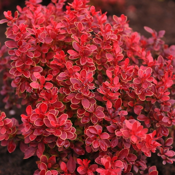 Саженцы кустарника барбариса Ред карпет (Red Carpet) – растение с примерной равным диаметром и высотой до 1,5 м. Его крона подушковидная и раскидистая, а кора необычного коричнево-желтоватого оттенка. Листья у данного сорта пурпурные или красные, маленькие и изящные, которые к основанию начинают сужаться и переходят в короткий черешок. Цветет растение в мае – июне. Сформированные цветы одиночные или могут быть собраны в соцветия. Снаружи они красные, а внутри желтые. Они располагаются вдоль всего побега. Созревающие в сентябре плоды розового и красного цвета. К почве сорт не требователен, но лучше сажать крупномеры Ред карпет на легких суглинистых грунтах со слабой или нейтральной щелочной реакцией. Ред карпет редко поражается болезнями. Его часто задействуют для оформления групповых посадок или для свободно образованных живых изгородей.