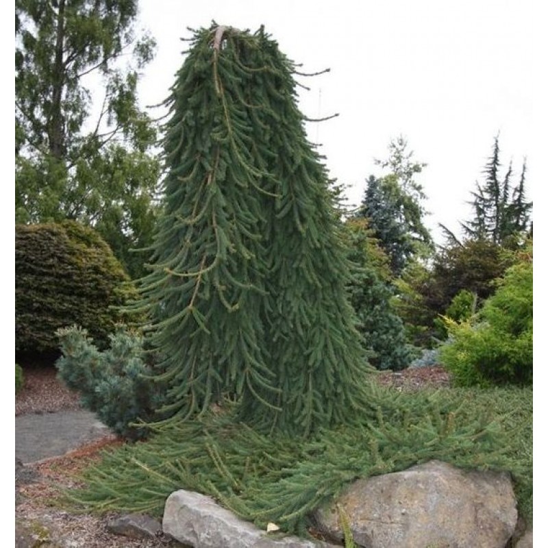 Саженцы ели обыкновенной Фробург (Frohburg) вырастают в стройные хвойные деревья с декоративным шлейфом из плакучих ветвей. Хвоя – дымчато-зеленая, короткая и жесткая. Одинаково эффектно смотрится в массовых посадках и как солитер.Ель обыкновенная Фробург вырастает на 10 см в год, и в 15 лет крупномер достигает 2-2,5м. Яйцевидные шишки из зеленых созревают в бордово-коричневые. Достоинства: устойчивость к холодам и морозам; хорошо выносит тень, но быстрей растет на солнце; Что нужно учесть: почва требуется влажная и хорошо дренированная; молодые саженцы необходимо укрывать в морозы; не выносит застойные воды в грунте.
