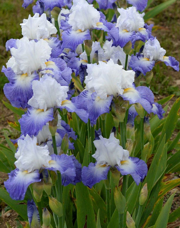 Рассада Ириса Ализес (Alizes) – это прекрасная возможность дополнить экстерьер своего дома или разнообразить дизайн цветника. Высокорослый цветок в период цветения порадует привлекательным внешним видом. На фоне голубых нижних лепестков удачно выделяются белоснежные верхние. Основные характеристики сорта: