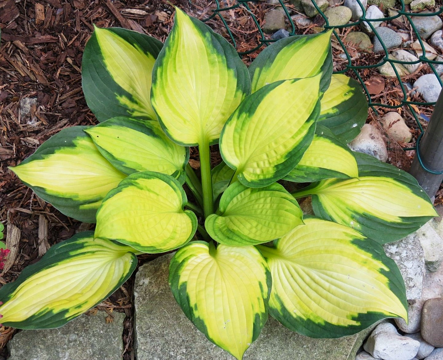 Хоста сорта Georgia Sweetheart (Джорджия Свитхарт) высота хосты Джорджия Свитхарт 45-50 см, ширина до 60 см. Главным достоинством являются крупные листья, которые придают ей особый очарование. Листва плотные, гладкие, окрашены в желтовато-оранжевый цвет с темно-зеленой каймой. К концу сезона золотистый цвет выгорает и становится более кремовым. Сажать кустарник рекомендуется в полутени, так как при ярком солнечном свете средняя часть листа может сгореть, зато при посадке в полную тень она быстро зеленеет. Только в полутени можно по достоинству оценить красоту хосты. Куст нормально переносит зимние морозы и без укрытия.