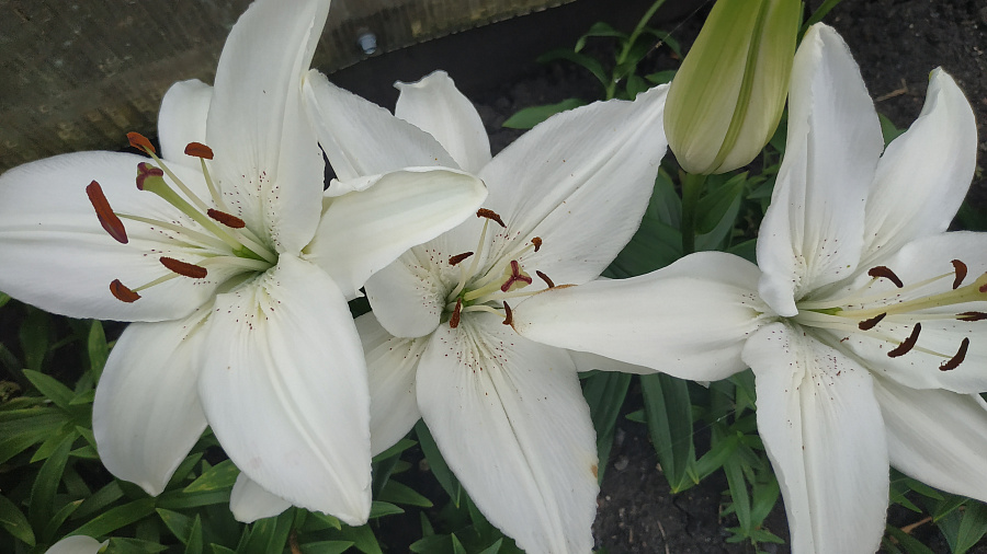 • Окраска цветка : Высоко рентабельная чисто-белая лилия. Крапа нет, в горле слегка зеленоватая. Пыльники коричневые, рыльце светлое, плотная фактура лепестков