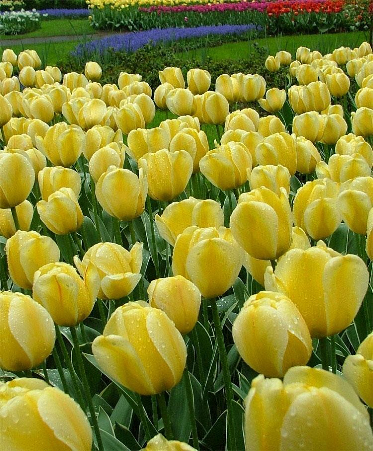Луковицы тюльпана Джап Грот (Jaap Groot) отличный посадочный материал для украшения любой территории – будь то городская клумба или приусадебный участок. Этот весенний цветок имеет крупный бокал ярко- желтого цвета, может достигнуть 10 сантиметров в диаметре. Само растения высотой до 60 сантиметров. Цветет в первые дни мая. Устойчив к престролепестности. В срезке стоит долго. Может применяться в городском озеленении. Подходит почти любая почва, но преимущественно со слабощелочной реакцией. Поливать стоит умеренно. Уход несложный.
